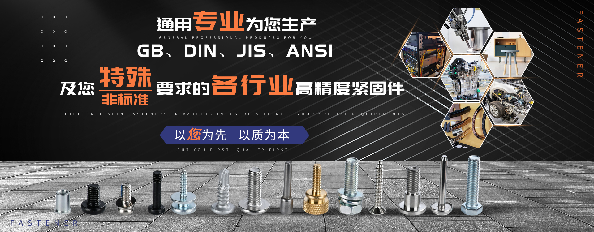 中山市通用螺絲制造有限公司成立于1987年,工廠坐落于廣東四小虎之一的中山市,北連廣州,毗鄰港澳??傉嫉孛娣e14000m 2,足有兩個足球場1998年通過德國萊茵TUV ISO9002認證,于2002年通過TUV ISO9001:2000認證。2008年通過ISO 14000認證。我司主營自攻螺絲組合螺絲機械螺絲、防松螺絲等標準和非標準件,既可按客戶的要求提交所需的產品,也可為客戶量身定做所需產品。我司擁有專業的產品檢測隊伍和投影分析儀、金相、硬度計(韋氏和洛氏)、扭矩力測試計等完善的檢測設備,為電子、電器、五金塑料、衛浴、家具、機械、汽配等行業提供符合歐盟質量、環保要求的產品2006年,我司自主開發的ERP管理系統,使我們的生產和服務效率得到了極大的提高 經過三十多年地摸爬滾打,依靠眾多新老顧客的支持,通用螺絲逐漸成長為國內知名的緊固件供應商。了解更多 >>